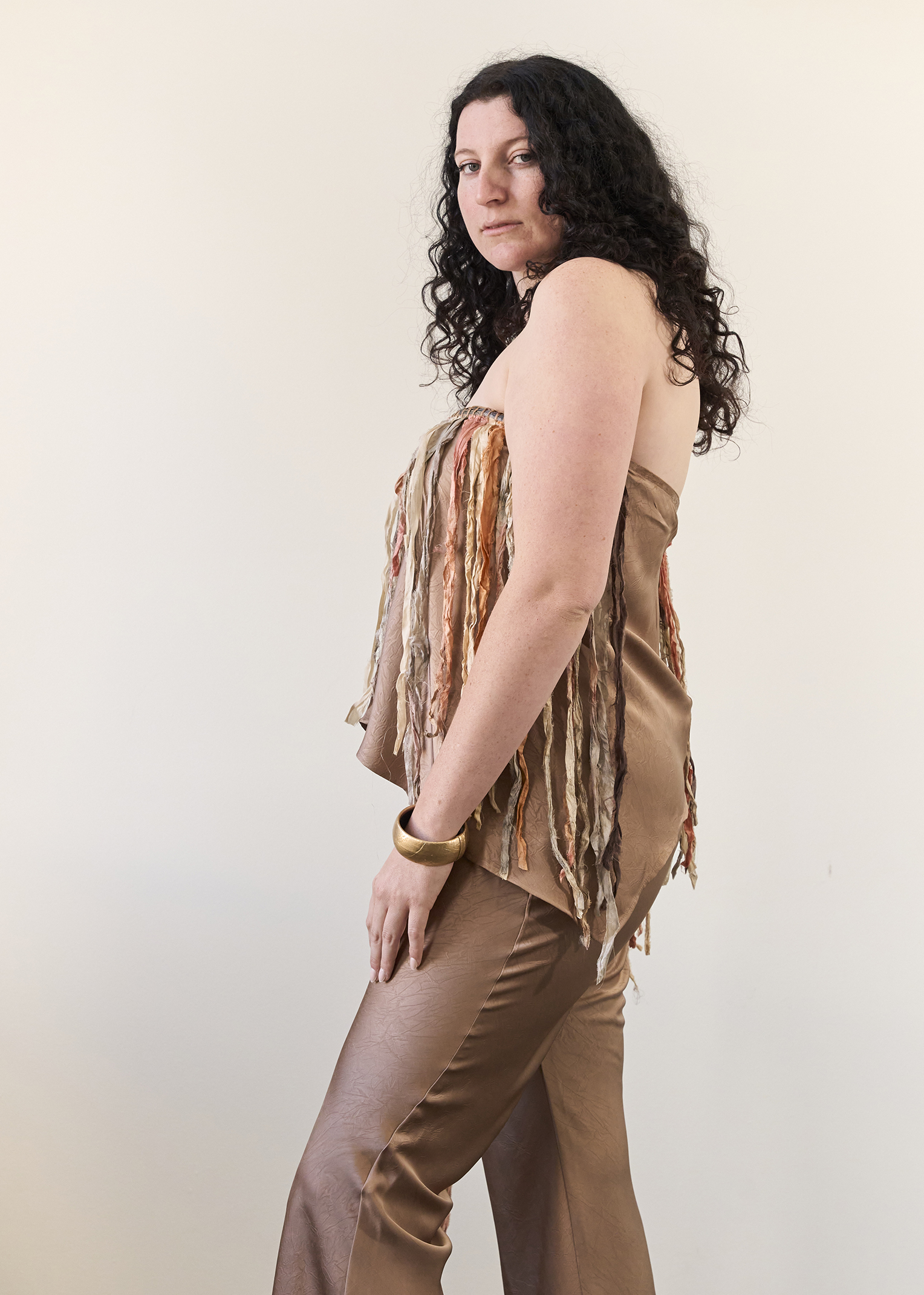 “I call myself a fashion designer and creative as I deconstruct upcycled fashion and make it into new pieces, adding my dying work with native plants and woven adornments that highlight my culture,” Cassie explains.